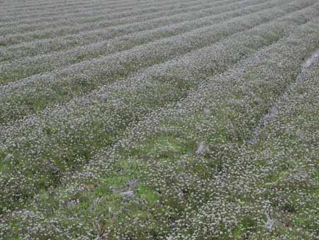 最近のことのように思うのだけれど、ご近所の田んぼやあぜ道に白い、小さい花がびっしり咲いている。それも放置された田んぼというわけでない。