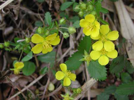 ミツバツチグリの名前は三年越し。今年、思うような写真が撮れたのでアップしたものの、 去年の写真 とそうとう印象が違う。改めて本を見たら、ツルキンバイという「ライバル」がいた。