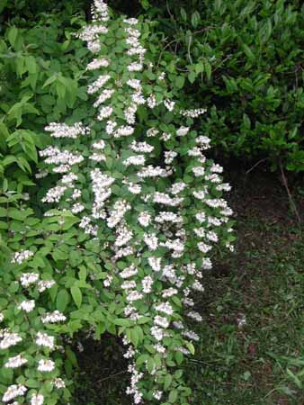 そこにマルバウツギ?の枝が、花を着けて枝垂れていた。まるで小菊の懸崖作りのよう。思わずカメラでキャッチ。