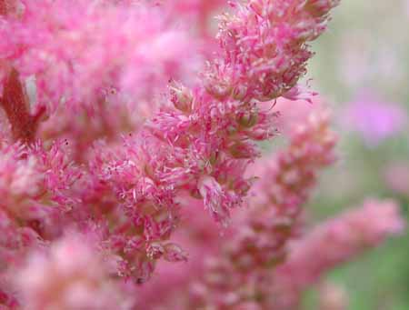 花の形は、花の新旧によるのだろうが、鐘形から杯形。その口から雄しべが飛びだしている。しかし興味を惹いたのは、花が濃いピンクと白のまだらになっていたこと。それを遠くから見ると、柔らかいピンクの花色になるらしい。品種名はピジョンピンク。
