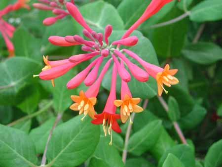 対生の葉がくっついた真ん中から花が飛び出して、まるで「流星群」のよう。新しい花は花弁の内側がオレンジ色、しかし古くなると、赤色に変色する。