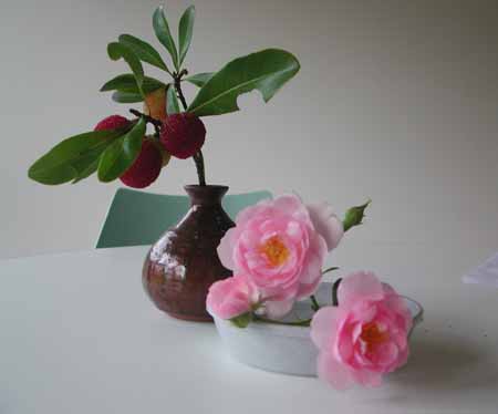バラの花はピンクのカップ咲き?好んでバラの花びらや花粉を食べる虫が多いけれど、これはご無事。