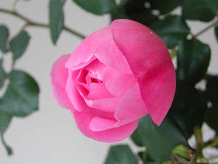 この寒さでは外のバラはもう無理。2,3日前に頂いた切りバラが、室内の暖気でほんのりふくらんだ。