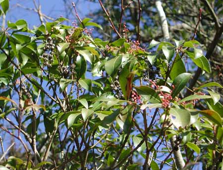 トウネズミモチは、名前のとおり、中国から明治に渡来した繁殖力旺盛な木のようだが、森林への侵入はできていないという。事実、この木も落葉林の縁に生えていた。