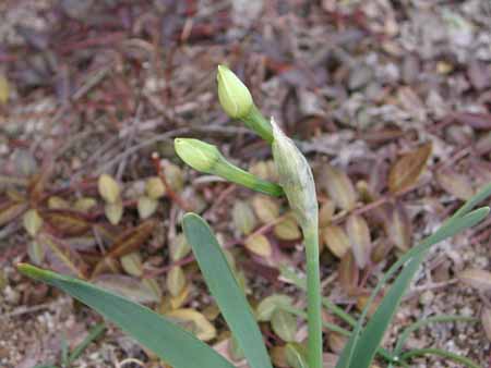 海岸に自生したり、あるいは人為的に植栽されたニホンスイセンの名所が各地にある。だが、当地のように海岸から離れた高地(220mほど)は、あんまりニホンスイセンに適さない気もする。