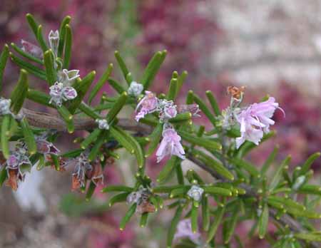 ローズマリーは花がなくても周辺が強い香りで満たされる。その香気にはα(アルファ)ーピネンやβ(ベータ)-ピネン、カンファーなどが含まれるという。前の2つを知ったとき、アッと思うと同時に納得した。これらは葉や幹から揮発して、針葉樹林に漂う成分でもある。そして「森林浴」を具体的にする化合物。いっぽうカンファーは樟脳のような香りである。