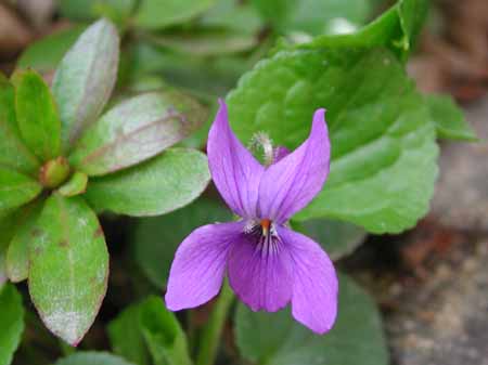 写真のスミレはタチツボスミレのつもりで撮ったのだけれど、花柄に毛が写っているので、ニオイタチツボスミレなのかもしれない。横にツツジの葉があることからわかるように、庭に移植されていた。