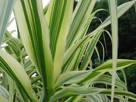 しかし、そんな植物談義は別として、あまりにも見事な斑に、思わず自転車を止めた。すべての葉っぱにひた走る、グリーンのラインは、只まっすぐに、まっすぐに。そして最後に葉先に向かってカーブを描く様子は、毛筆のかすれにも似ているのかもしれない。