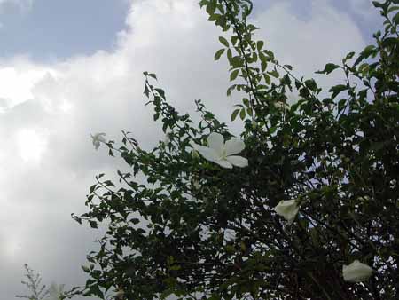 ただこの樹の立つ場所は寂しい。脇には汚れた門柱が2本あり、勝手に育った低木や夏草に覆われている。背後に住宅があったのかどうかはわからない。思えば、このムクゲはご主人の自慢の一品だったのだろう。