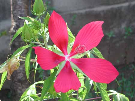 住んでいるのは広島だが、お寺の1つが埼玉県の狭山市にある。お盆でお墓参りするたびに、いやでもこの花が目に焼き付く。多年草だから、毎年境内の同じ位置に。
