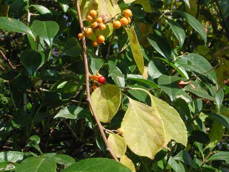 ツルウメモドキは知らない植物だった。装飾性がどう違うのか、こちらの果実はご安泰。