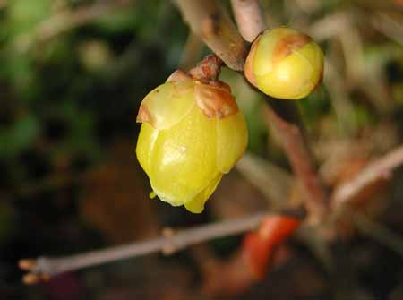 ロウバイ(蝋梅)の命名は「花が蝋細工のようだから」という文言が、ちまたにあふれる。しかしそれを知らない人に伝えるのは、案外難しいのかも。花の表面が、ぼんやりと太陽光を跳ね返す。それが蝋のようなのかな?