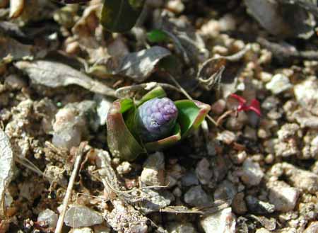 対して、ムスカリ・アズレウムは、小さな葉と蕾を同時に覗かせる。それがなんとも嬉しい。