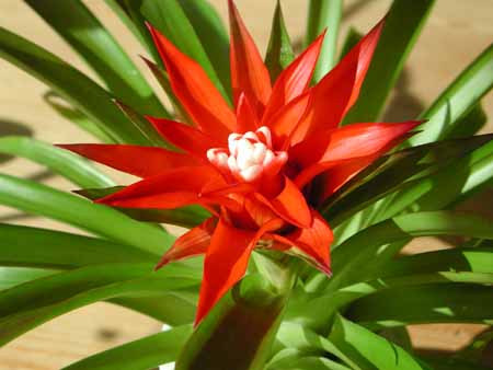 グズマニアは、属名Guzmaniaをそのままカタカナにしただけ。和名を付けるいとまがないのだろうけれど、記憶力の落ちたこのごろではなかなか覚えられない。微生物の名称でも同じだが、ときに「ローマ字読み」と「英語風発音」があってなおややこしい。