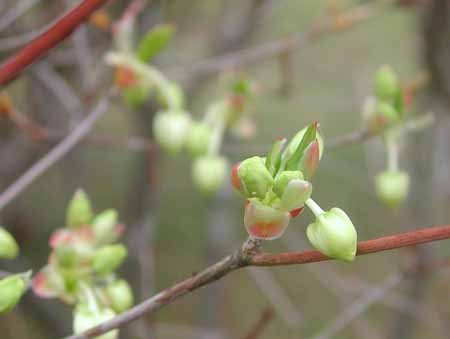ソメイヨシノが花盛りのころ、その下で静かに花芽を割るのは、ドウダンツツジ。サクラの華やかさに対比して、その薄萌黄(うすもえぎ)を帯びた花芽が、心の平安をもたらす。