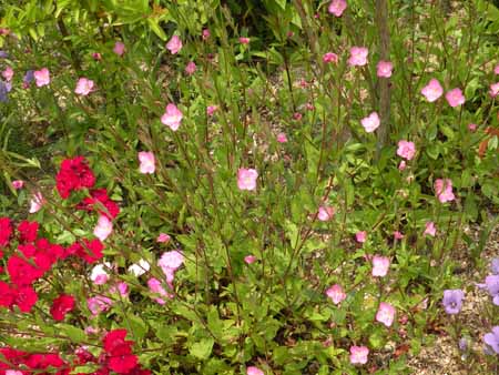 アカバナユウゲショウが種を散布する方法は、おもしろい。雨が降ると熟した実が開いて、種が水に流れる。