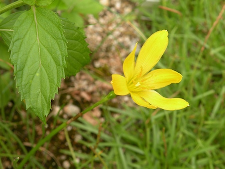 黄花のこのゼフィランサスは、なぜか球根が殖えない。環境条件が悪いのだろうか。しかし球根が消えるわけでもない。