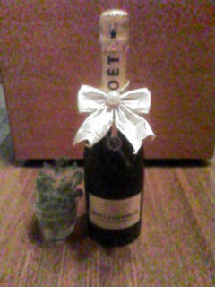 いただき物ですモエというカーレースのF1のシャンパンファイトで使われているシャンパンだそうです私がほんもののシャンパンを飲んだのはつい最近のことなのです。飲んだとき「うわーーうめーー」と思わず言いそうになりました。ちょっとセレブな感じの雰囲気でしたので声にだせませんでした。そのことをご馳走になった方に話したらクリスマスに奥さんと一緒にどうぞと送っていただきました。シャンパンの首にリボンをつけての記念撮影!妻はまだ飲んだことがないのでなんというか?楽しみです。(彼女はドンペリなるものをどこかでご馳走になったそうだがオレには「そんなの関係ねぇーー」まだ、ディスコがはやっていた時に!)クリスマスまでに終わらせないといけない仕事が山積みです。大きな山をいくつか越えないといけません!おいしい料理とシャンパンをいただけるようにもう一踏ん張り!