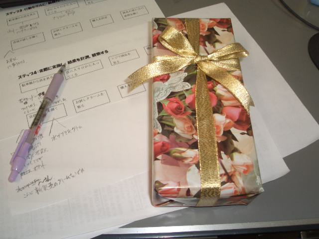 明日から大阪、京都に出張です。社長のアカデミーのエントリーがまだ書き終わってなくてひっしこいて書いていたら妻から「はいこれ!誕生日でしょう!」私「あ・・忘れていた誕生日だっけ」 「何歳だったっけ」 「ありがとね!」明日から出張の準備ができていなくてすっかり誕生日忘れていました。中身は、袋を開けているときに思い浮かびました。中をまだ見ていなくてももしかしたら「筆入れ」とたずねました。当たりーなんで妻は俺のほしいと思っていたものをわかったのだろう最近多色ペンをいっぱい買ったからかな?でも、その前に用意していたようだし「なんか恐ろしや・・・・・」へんなことは、うかつにはできないな!せいぜい、マインドマップに励むとするか!