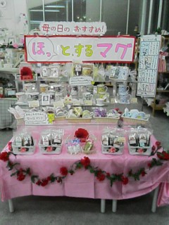 私が母の日で送る当店おすすめ「ほっとする」マグカップコーナーNLの配布やふとんの販売で日中、お客様のところにうかがうと家にいるのは、やはり、おばあちゃんが一人でという家庭が多かったのです。特に冬だとコタツにはいってテレビを見られている一人でいる時間が多いみたいなのでそんな時、茶こし付カップで一人分だけお茶を入れられ花柄の楽しい感じがするマイカップを使ってみてはと思いました。うちの母も、ほとんど一人で家で仕事をしているのでちゅっとは気分転換になってもらえれば良いかな今年の母の日はこのカップのチラシを打ち出したが今のところ、反応、いまいち商品は、悪くはないと思うチラシは、・・・・・・・母の日の送る物、過ごしかたがだいぶ変わってきているようですねスーパー、百貨店のチラシをみるとお花やお菓子のスペースが増えているようです。服とかは、相手の好みをよくわかっていないと喜んでもらえないので無難な花とかお菓子がいいのかな今日の朝礼で洋服を送る楽しさ、良さはなにか接客をしながら考えてみるよう話したのですが自分自身が服を送ることに弱気になっていたのかなそれとも、時代の流れをつかみつつそれを踏まえての提案を考えていかないといけないのかな迷ってしまっている私ですそんなことを考えてもあと2日間でお終い期待して、楽しみにして来店してくれるお客様に喜んでもらえるようがんばろう今も電話で、「この前見た洋服まだ、ありますか?午後から伺います」とありました。おかあさん、ありがとうその気持ちを大切に!うちのパートさんの漫画ポップです。○○さんにこんな才能があったなんて私には、到底できない芸です。