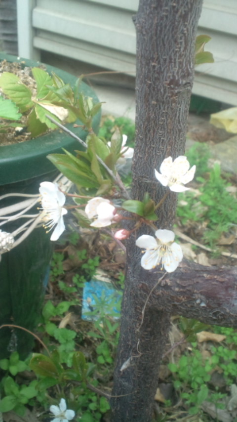 増殖型の定期検診、短期バイト始めた初号機の代わりに連れて行く。 小児科も脳外科も、異常なしで安心。 次回(7/28土)予約して帰宅。 ●写真は… *スモモ、初開花。 枝先には蕾ナッシング。 根元の短枝のみ。 次回の剪定は、如何に短枝を出させるか、だな。 *ユスラウメも初開花。 こちらは枝と言う枝、全て根元から先まで蕾ついちょるΣ(゜□゜;) 咲く順番は枝先から。 今年、実が生るかな、楽しみだねっ♪ *オリーブ鉢@店に間借りしちょるフイリハタザオも開花。
