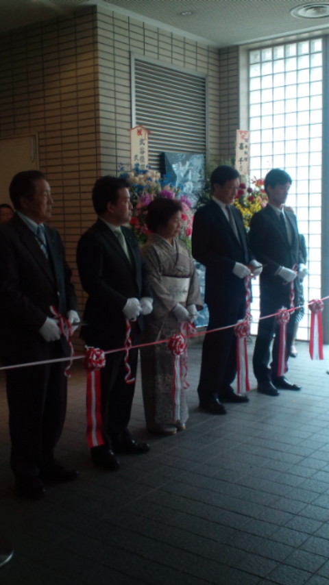 お客様が趣味で描いた絵画展覧会を見に行く。 焼酎1升瓶2本ぶら下げて(笑) 皆、ドレスアップした服装の中、ガーデニングババァの格好のリリス、娘さんに 「誰かと思ったけど、1升瓶見て分かったぁww」 と笑われたヽ(´ー`)ノ 写真は、テープカット。 本当に切るんだね。 そして拾う姿がちと…(笑)(笑) 向かって右端が足利フラワーパーク専務さん。良い男だが、その左の社長(父親)のダンディーさは目を見張ったよん♪