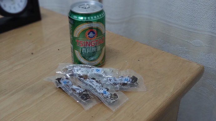 先日、中国人スタッフ3人とバオトウの町に行く。何もない隔離されたところから久しぶりに街に行くとビルだー!!!わっ! 人がいるーーー!!!完全におのぼりさん気分目的地は、スーパー買い出しである私は、青島ビールと、木の実と、牛肉の燻製を買うそしてもう一つの目的でもある、電気屋に行き、防水カメラを買ったこの前現場で、幅跳びをして(ここはどこもかしこも幅跳び場なのだー砂漠だから当たり前?)その時思いっきり飛んで、ポケットから落っこちて、、、、、速攻で壊れた。砂漠の砂は細かいと、改めて実感したのだった、、、、、そして今、青島ビールを飲みながら、これを書いている子の燻製牛肉が、おいしいちょっとピリッとした、集めのビーフジャーキーと言った感じでビールにはよく合うこの1っこが中国で15円ぐらいするから高い方だろう