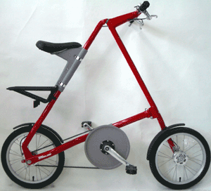 イギリスのインダストリアルデザイナーが考案。あっという間に折りたためるジョイント設計。三角フレームはパウダーコーティングで傷がつきにくい。ケブラーベルトで静かな走行音。