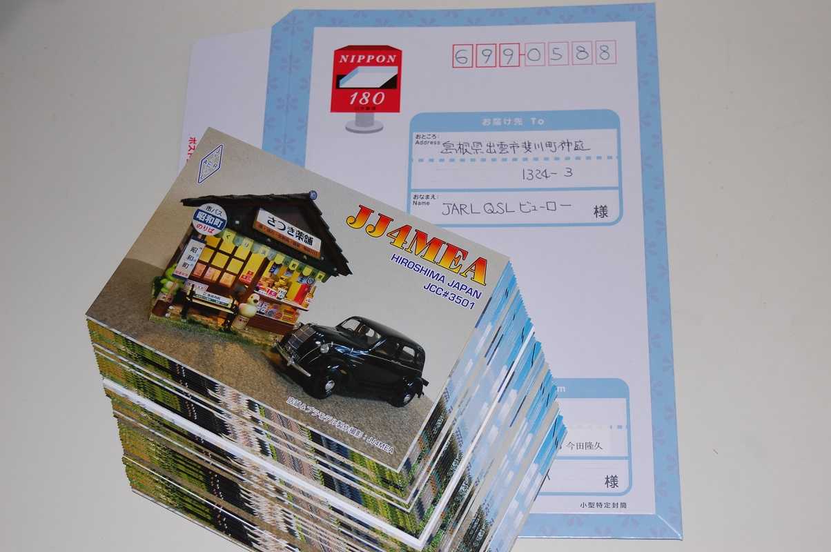 今月の交信証QSLカード発行は70枚だけでした。最近7MHz運用が激減しカード発行も少なくなりました。今回も島根ビューローにスマートレターで郵送しました。eQSL、HQSLも登録してないので紙カードのみの発行でした。