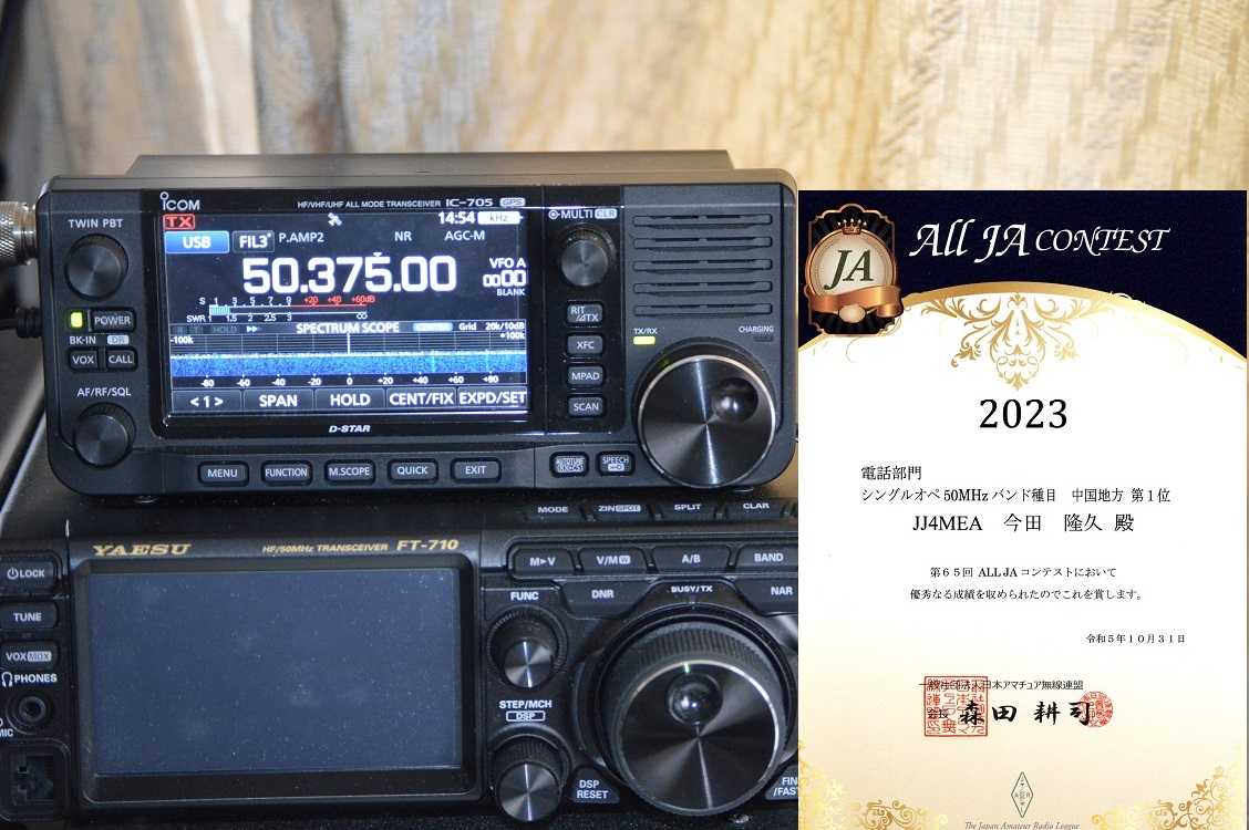 今年4月に開催されたJARL主催の ALL JAコンテストで部門入賞し賞状が届きました。自宅からIC-705 10Wでアンテナは2.5mGPでした。この部門ログ提出が少なかったので運良く入賞出来ました。交信数少なくてもダメ元でも電子ログ提出はしてます。ごサービス戴いた各局有難うございました。