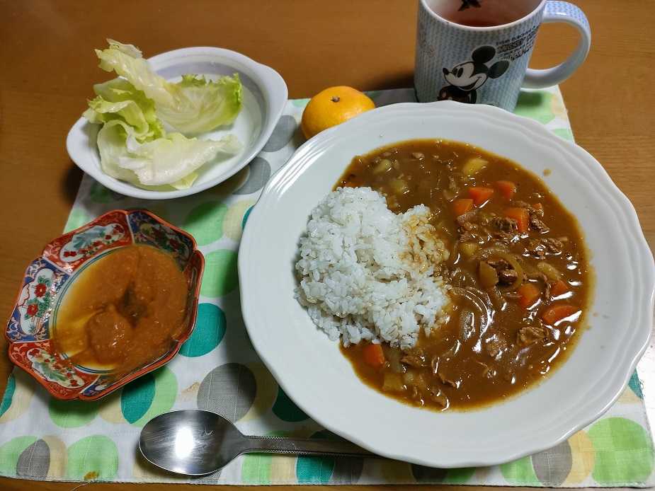 ルーはゴールデンとジャワカレーの2種類をブレンドしてます。牛肉はカレー用でなく柔らかい牛肉で豚肉でもOKです。隠し味は国産ニンニクと蜂蜜を入れてます。半分づつのルー使っても4日分になります。