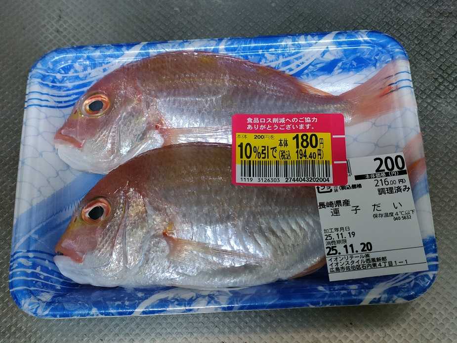 昨晩は小さな鯛の煮魚でした。焼魚より煮魚を作るのが多いです。今回は原価は300円少しでした。今晩はは国産豚のロースの予定です。