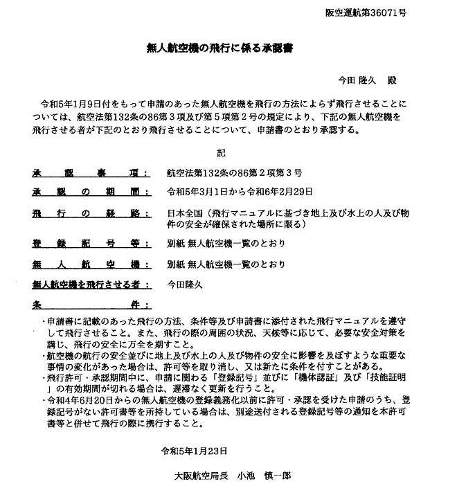 隣地の上空を侵入することなく、国交省の禁止項目を守りながらの飛行