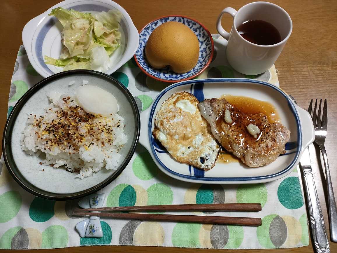 週2日は肉料理でそんなに大きくない豚のステーキでした。