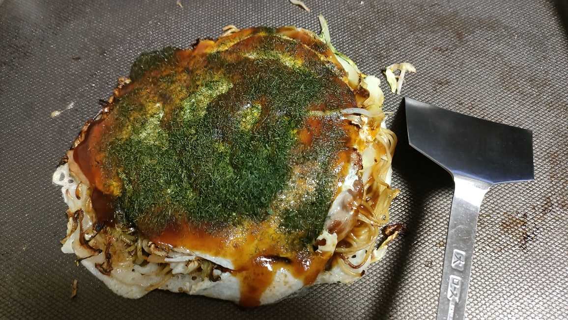 そば半玉に肉玉のお好み焼きは原価300円以下で作れます。