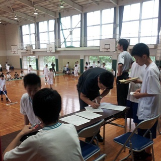 こちらは我が子らのホーム・グラウンド?親父は雨が降ろうが槍が降ろうが、盆だろうが正月だろうが、送迎に出動します。(ただいま会員募集中!(^o^)/)そしてこちらが親父のホーム?・コート!ギャラリーが多いと思ったら、バスケ部の父母会があったそうな。。今年の新入部員は10名(経験者5名)。一時は人数不足で絶滅危惧種の指定寸前だったが、また賑やかな活動が出来そうでなにより!!(^-^)v