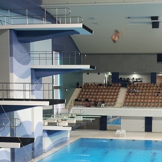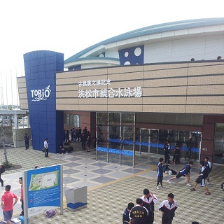 今日明日はこちらの水泳場でお世話になります!こちらは「ToBiO」の飛び込み台!(ただいま選手はアップ中、愛知&岐阜も参戦で超ハイレベルぅ~)