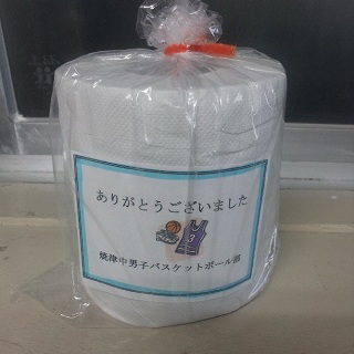 今日は「中学バスケ中部選手権」のため、榛原中に来ました。先週に続けてトイレ・ネタですが、水道の脇に何気無くこんなモノを見付けました。我々も他校を訪問する時は「ゴミは持ち帰り!」と躾ますが、これなら置いていっても良いですワ!! 素敵な心遣いダ♪昨夜、修学旅行から戻ったAKBは惨敗。。リベンジを託したT洲中も、前半終わって苦戦中・・・それにしても最近、メリハリのある気持ちの良いレフリィングをする女性審判が増えたネ!AKB修学旅行のお土産! (株)おたべ の京バーム宇治抹茶と豆乳のバームクーヘン なんだそうです。有り難く頂戴しますゥ~♪