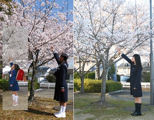 桜で思い出した、少し前の娘の写真!(^^ゞ 左が小学校入学、中央が中学校入学の時に、そして右が去年の高校入学で、同じ桜の前でポーズさせて撮ったのね。もう次は親父のいうことを聞いてくれそうにないかな…?