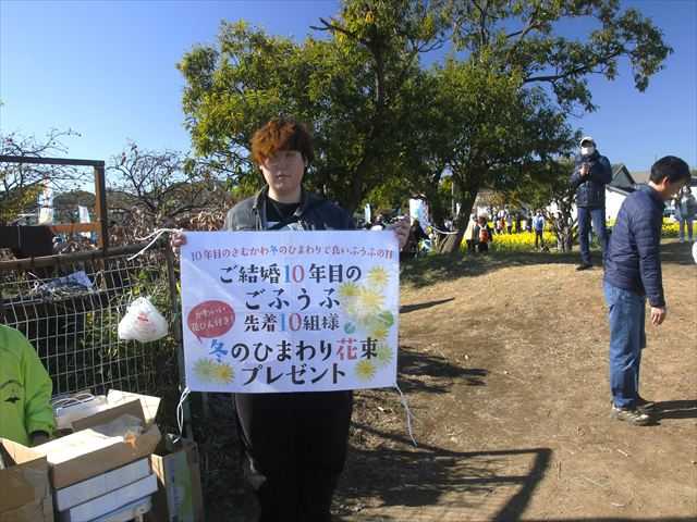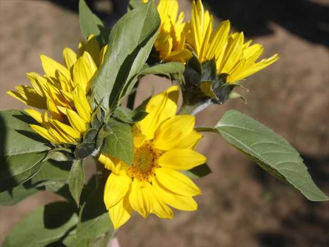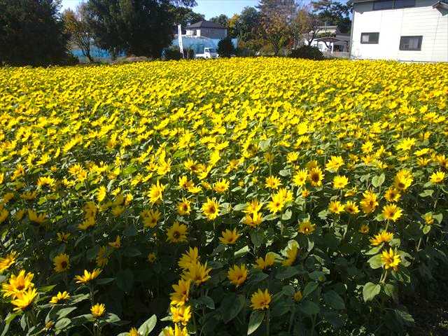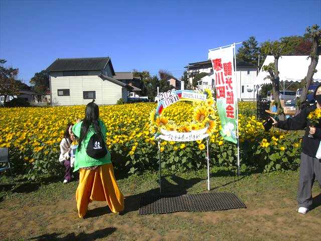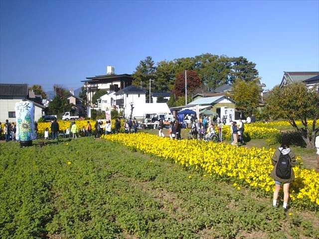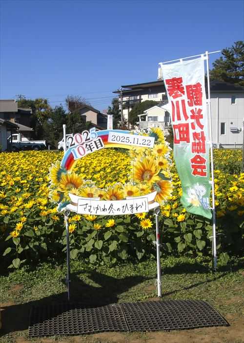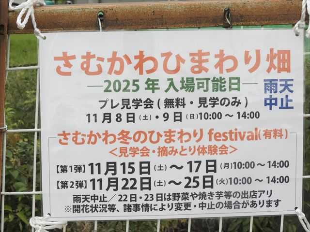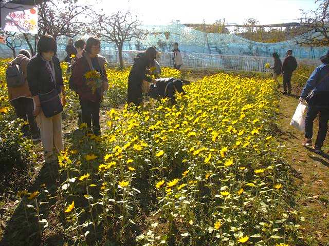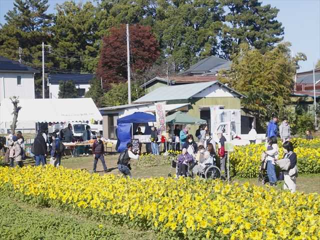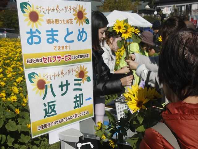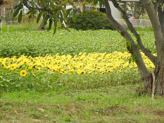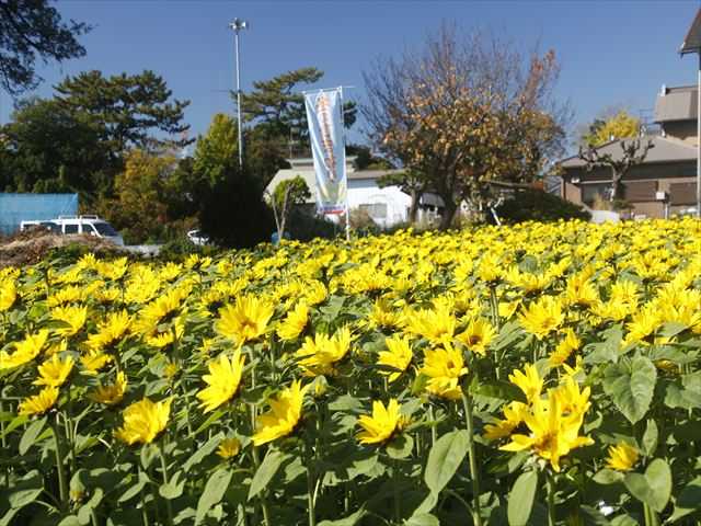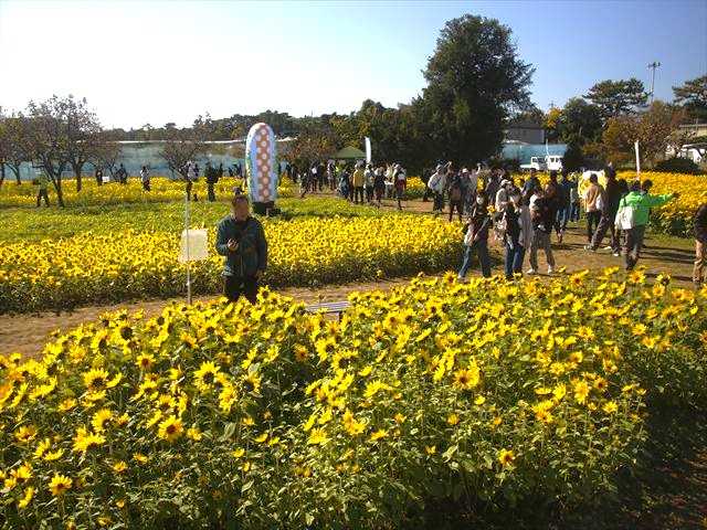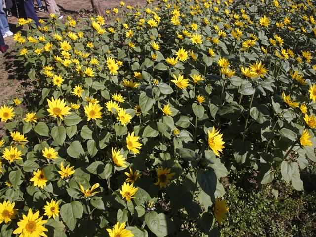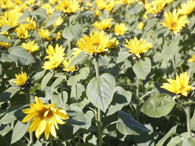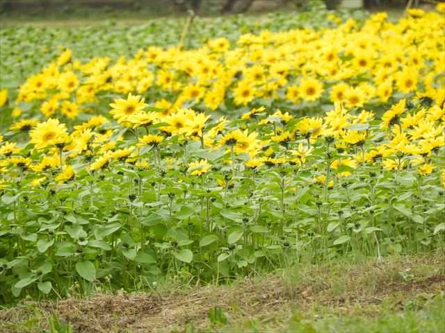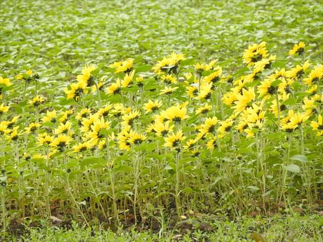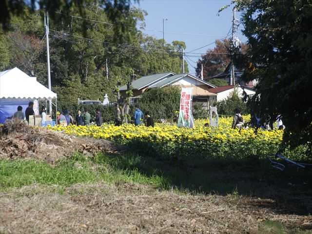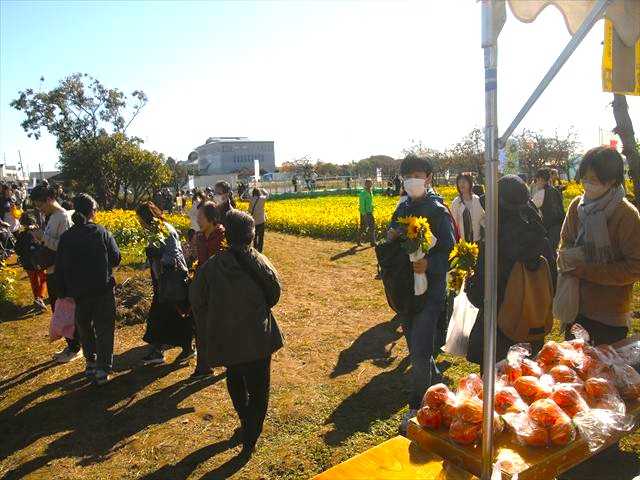 雨天中止/22日・23日は野菜や焼き芋等の出店アリ ※開花状況等、諸事情により変更・中止の場合があります植える時期が異なるのか満開のもの蕾のものとあった。ひまわりの草丈は50センチほどと小さいものである。ズームアップ。ミツバチの活動はなかったがこの時期になると休眠?。未開花のものは10日後の22日には咲くのであろうか。22日に再度来ることに。