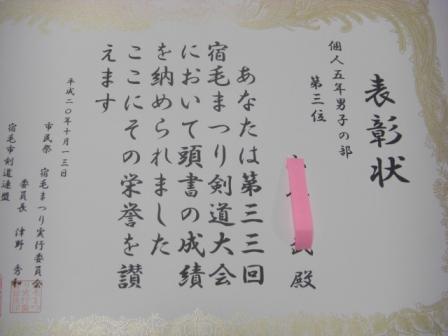 今日は宿毛に遠征です。宿毛・・・宿毛は遠い。来週は松山遠征だけど、宿毛は松山より遠い・・・。高速が通ってないからだと思う。今朝、5時出発。タケキチとターリンは4時起き、私は4時半起き。送っていって、そのままニ度寝した。目覚めたら9時半だった。既に試合が始まってる時間。なんて能天気な母だろう・・・。日がな一日 ダラダラして過ごす。結果 タケキチ 個人第3位!ターリンなんか 帰りのバスの中で踊ってるんじゃないかと思う(≧▽≦) 。低学年(3,4年です)も団体第3位になったので 表彰式まで残って、5時半ごろ宿毛を出発したらしい。帰ってきたら9時前だわね。それを見越して ターリンは明日は年休。タケキチは学校で寝てしまうかも~~~。お疲れ様でした。