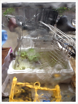 うちには白めだか4匹、幹之めだか15匹が裏のテラス屋根の下で同じ水槽に同居しております。今年は気候条件がいいのか春から産卵しっぱなしで、かなりの数の稚魚が誕生し大・大家族になりました。この間の台風11号の通過で自転車に直撃を受けたちびっこ組。ありゃりゃりゃ~屋根代わりに被せてあった簾がぶっ飛び、自転車の重みで発泡スチロールが少しかけたものの稚魚たちは無事でした。(慌てて救助に飛び出した私は転んで膝に青アザ作りましたが…)台風さん、もう来ないでください