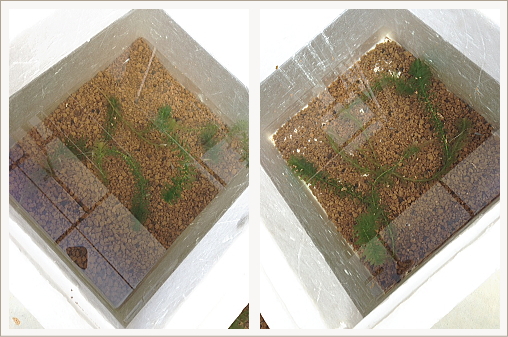 いつもお世話になってる生協さんに古くなった宅配用の発砲容器を2ついただきました。生協さんの発砲容器はとっても頑丈!これから寒い冬を迎えるめだかたちにぴったりのお家になるんだなぁ。あと、これから水換えが減ってしまうので少しでも水質環境が良くなればと思いガーデニング用の赤玉土を敷いてみました。あら、赤玉土いいですね!観察もしやすそう。両方で24匹、とりあえず小さい組と睡蓮鉢組がお引っ越し♪もちろん、クネちゃまも…(^▽^;)どど~ん!て感じでしょ?もうクネってるのやら太ってるのやら…上のタイトルバナーの写真のクネちゃまと比べるとめちゃめちゃメタボ大きくなったなぁ…さて、次は成魚のお家の冬支度。この連休晴れたらいいのにな~