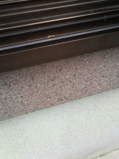 ピンクブラウンとコンクリートのツートンの部分が壁で、