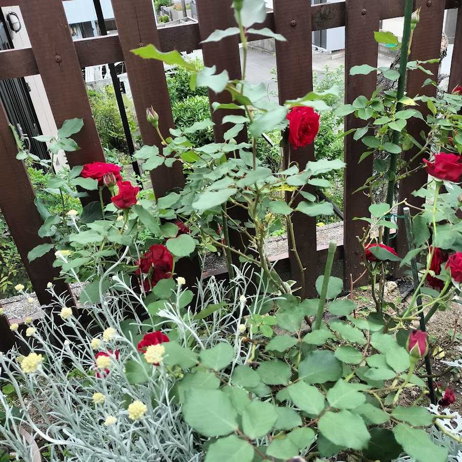 花は大輪だけど茎は細くてしなやか。トゲ少な目。