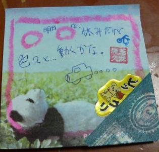 ノートの残りページ数が少なくなったので、同じシリーズのパンダの写真を買いました。 今まで良く使ってた付箋のパンダライフの表カバーを切り取ったのと、ガチャガチャのK-Xの説明の紙を切り貼りして作りました。 使ったマスキングは、エアメール系のマスキングとキティのマスキングを使いました。 ま、自己満足の世界ですね。 カワイ過ぎないことを目指したいのですが。。。。チビ(女の子)のテープを使う傾向から、女の子っぽくなりますね。 SNIHのかわいらしいイラストが入ったマスキングテープです。【メール便OK】[ SNIH/スニーフ ] マスキングテープ399円メール便:160円今日、クラブンでメモ帳を物色しようと考えてたら、スニーフの可愛い猫のマステが出てたので欲しいなーって思ったんだけど、ちょっと、1本で400円ってのがと思いながら、在庫限りって感じなので欲しいなーって思ってしまうんですよね。**色々な方のBLOG** ##freeのスクラップブッキング日和## **倉敷意匠****お勧めの何か**
