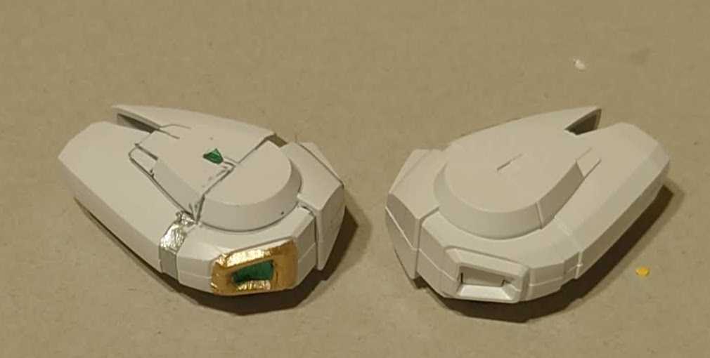 白いパーツのモナカ構造なんですけど、テープな適当な貼り方も汚れではなく汚しになってるのではないか。(自分の都合よすぎかな。)
