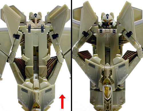 機首をスライドさせると、翼が折りたたまれ、胸部を形成します!