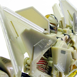 ロボットモード時の足爪と頭部を、後方にもそのまま露出させているのが印象的です。