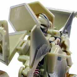 変形構造のためか機体下部がかなりぶ厚く、全体的にもかなりデフォルメされている印象ですが、独特な形状の主翼と水平尾翼のコンビネーションは、一目でそれと判ります。
